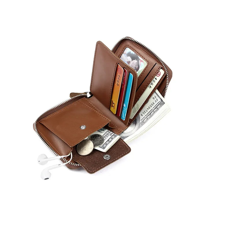 - 1 Carteira de Zíper em Couro - Weixier Premium